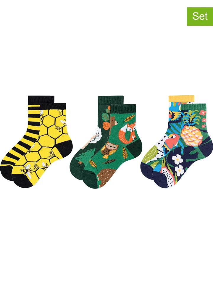 – 3 Paar Socken in verschiedenen Farben und Designs