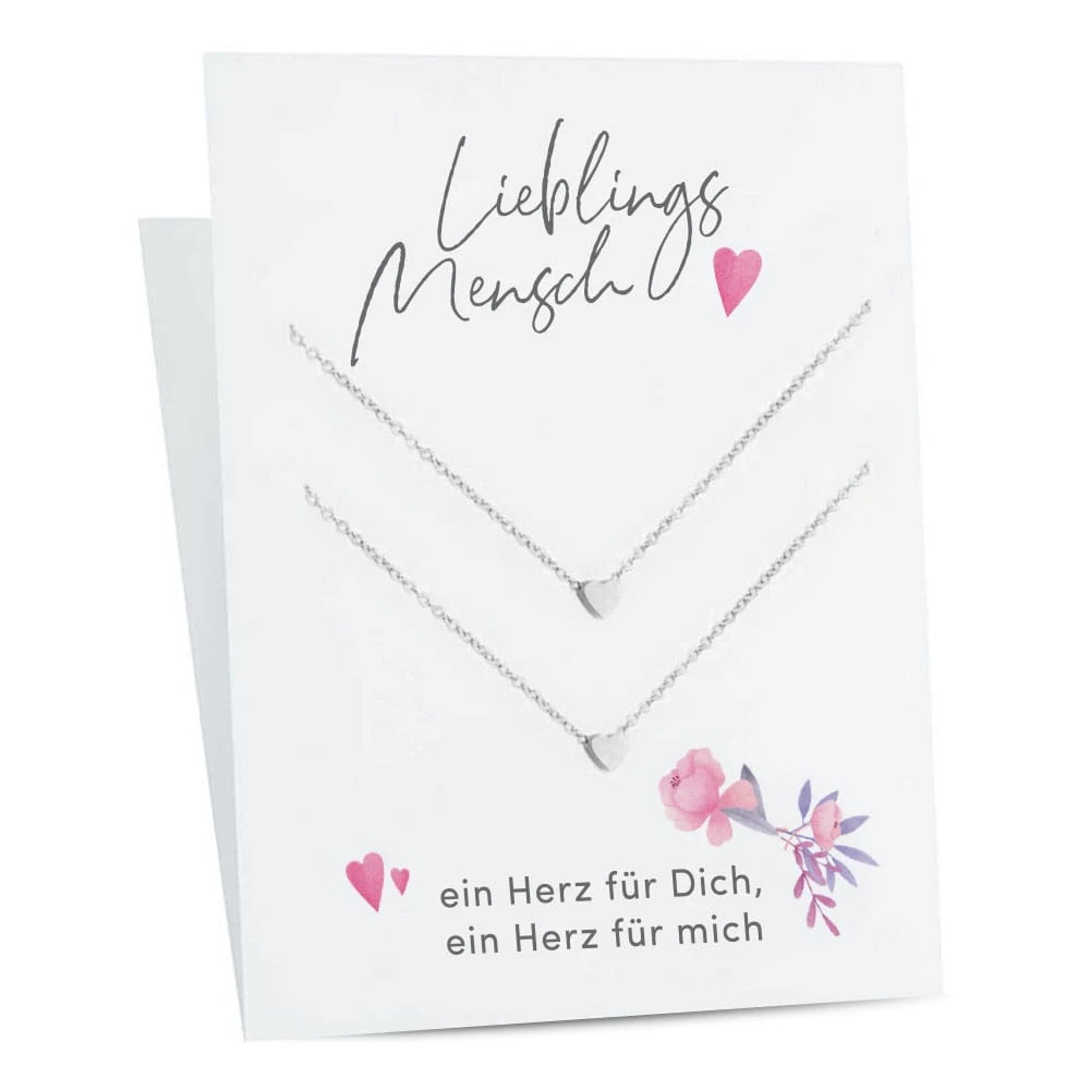 Freundschaftshalskette „Lieblingsmensch – ein Herz für Dich, ein Herz für mich“ mit Geschenkkarte | Freundschaftshalskette | Farbe: Silber