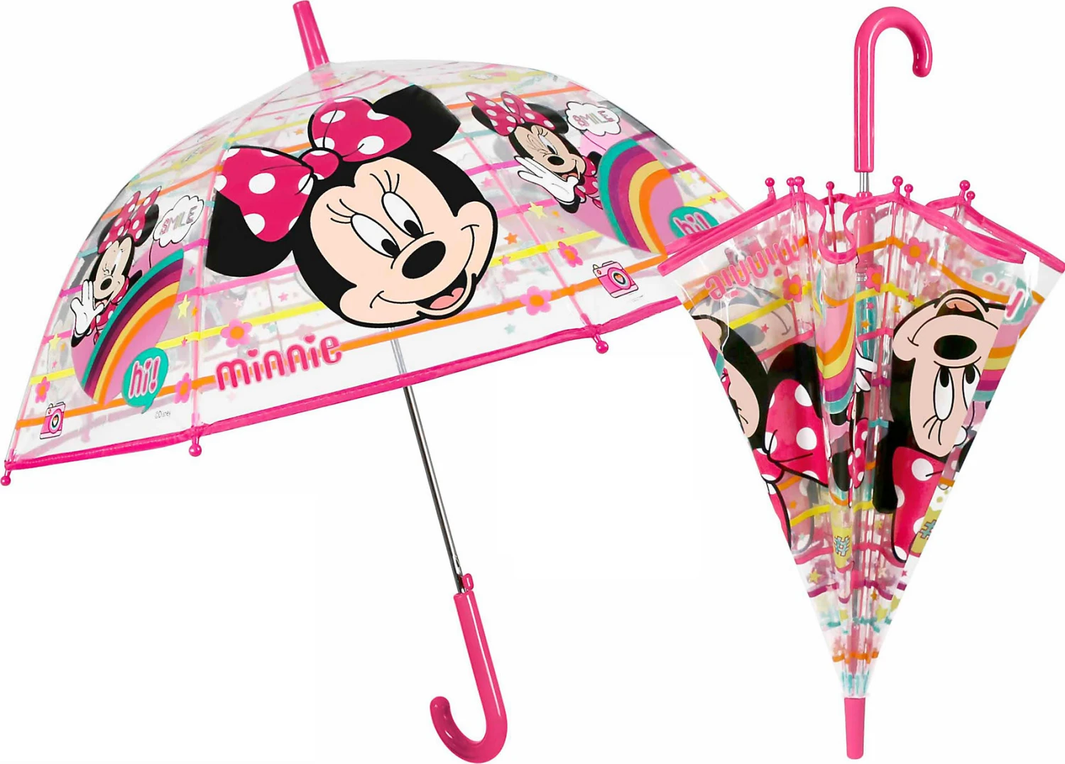 Der P:OS Kinderschirm Minnie Mouse ist transparent und zeigt sich mit tollen Motiven. Der Schirm hat einen gerundeten Griff, der von Kinderhänden gut gehalten werden kann.