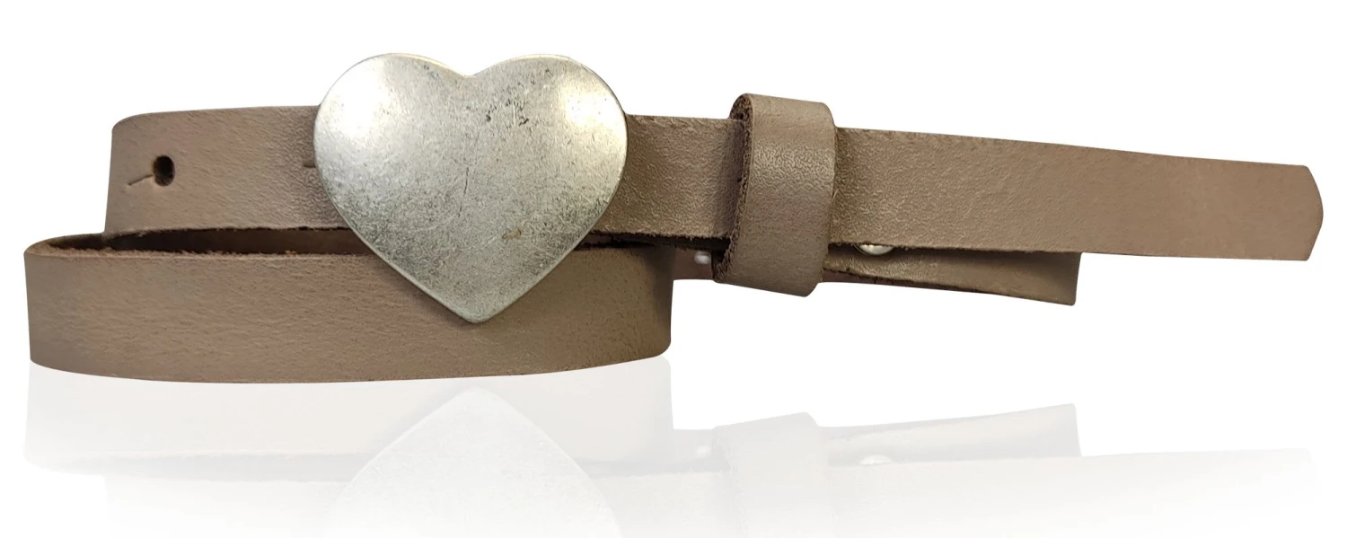 Süßer Kindergürtel mit einer altsilbernen Herzschnalle. Mit 7 Löchern zum verstellen kann Ihr Kind “ mitwachsen “. Der Riemen ist aus echtem Leder, EXTRA dünn geschnitten: trägt nicht auf, ist leicht, reißt nicht und ist plastikfrei! Das Leder wurde in den Niederlanden umweltschonend gegerbt, der Gürtel dann von uns in Bayern gefertigt.