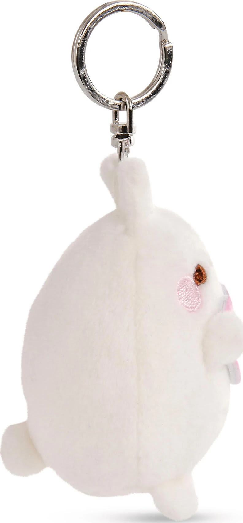 Molang aus der gleichnamigen TV-Vorschulserie trägt einen herzförmigen Regenbogen vor der Brust und ist aus einem super soften Plüschmaterial gefertigt. Als 8 cm großer NICI Schlüsselanhänger ist Molang an jedem Schlüsselbund oder Rucksack stets mit von der Partie!