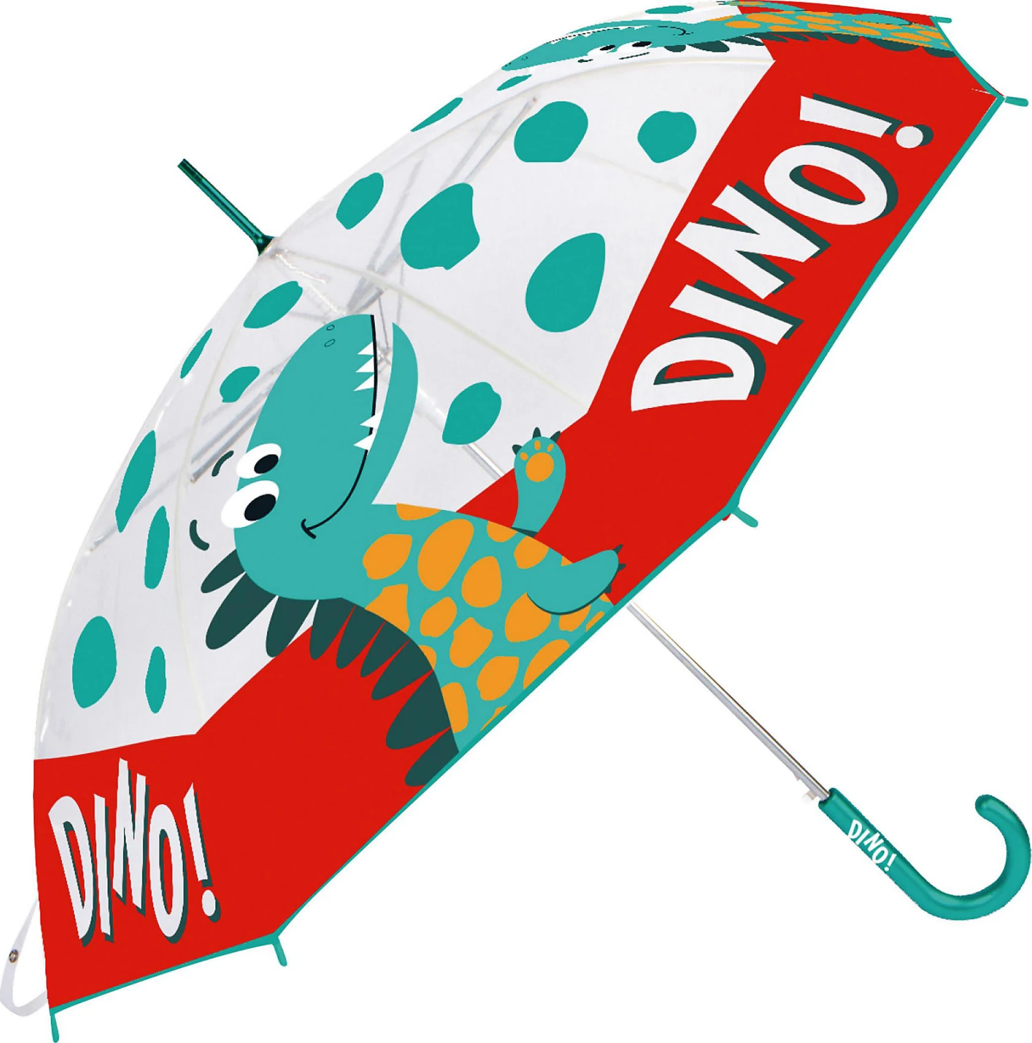 Der transparente Arditex Regenschirm Dinosaurier zeigt sich mit einem von mehreren tollen Dinomotiven (nicht frei wählbar). Der Schirm wird manuell geöffnet und verfügt über einen runden Griff. Mit diesem fröhlichen Accessoire sind Kinder bei Regen gut ausgestattet!