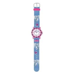 Hersteller: Scout ModellNr : 280375027 ( IT-Collection) Motiv: Amici Pferde, Blumen Zifferblatt: Analoganzeige, Farbe: mehrfarbig (bunte Zeiger) Gehäuse: Kunsstoff rosa (Glitzer) mit poliertem Edelstahlboden, Durchmesser ca. 30 mm (ohne Krone), Höhe ca. 7,8 mm Gehäuseboden: Edelstahl mit Herstellerlogo Armband: Textilarmband, Breite: ca. 1,6 cm Länge der Uhr: ca. 20 cm Dornschließe Dichtheit: Wasserdicht 5 ATM (50 m) Funktionen / Anzeigen: kratzunempfindliches Mineralglas, Stunden – Minuten – Sekundenanzeige, übersichtliche Ziffernblattgestaltung erleichtert das Lernen der Zeit Lieferumfang: 1 x Uhr