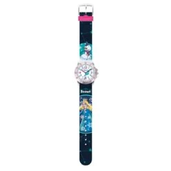 Hersteller: Scout ModellNr : 280378017 (Action Girls – Eisprinzessin blau) Motiv: Pferd , Prinzessin Zifferblatt: Analoganzeige, Farbe: weiss (farbige Zeiger) Gehäuse: Metallgehäuse silberfarben mit poliertem Edelstahlboden, Durchmesser ca. 29,5 mm (ohne Krone), Höhe ca. 9,5 mm Gehäuseboden: Edelstahl mit Herstellerlogo Armband: mehrfarbiges Textilarmband, Breite: ca. 1,6 cm Länge der Uhr: ca. 20 cm Dornschließe Dichtheit: Wasserdicht 5 ATM (50 m) Funktionen / Anzeigen: gehärtetes Mineralglas, Stunden – Minuten – Sekundenanzeige, übersichtliche Ziffernblattgestaltung erleichtert das Lernen der Zeit Lieferumfang: 1 x Uhr